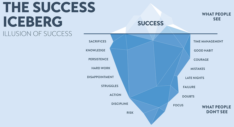 Think about elite athletes. If they have their heart set on a gold medal at the Olympic Games, do you think they would procrastinate with the level of training that they need to be committed to achieve that goal? No, they are inspired to be up and on every day for hours, days, months, and years to achieve their dream. All we see is the result, and we do not see the thousands of hours that go into the training and discipline to become the best. It is like an iceberg. We only see the result on the surface, not what has gone on under the surface.